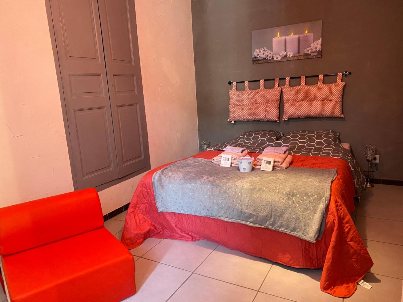Chambre Double. Offering free toiletries, this double room includes a private bathroom with a shower and a hairdryer. In the well-equipped kitchen, guests will find a stovetop, a refrigerator, kitchenware and a microwave. The double room offers a tea and coffee maker, city views and chocolate. The unit has 1 bed. ;