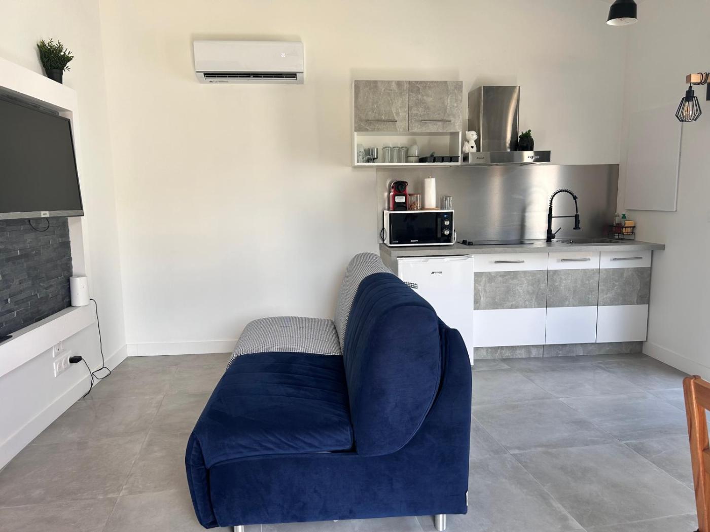 Appartement 1 Chambre. This apartment comes with 1 living room, 1 separate bedroom and 1 bathroom with a shower and free toiletries. The kitchenette features a stovetop, a refrigerator and a microwave. Boasting a terrace with garden views, this apartment also features air conditioning and a flat-screen TV. The unit has 2 beds.