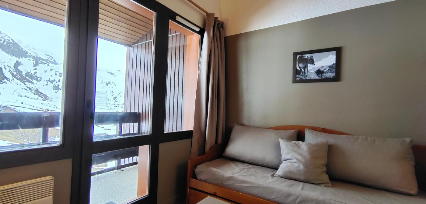 Studio - Vue sur Montagne. In the fully equipped kitchen, guests will find a stovetop, a refrigerator, a dishwasher and kitchenware. The studio offers a coffee machine, a seating area, a terrace with mountain views as well as a private bathroom boasting a bath. The unit has 5 beds.