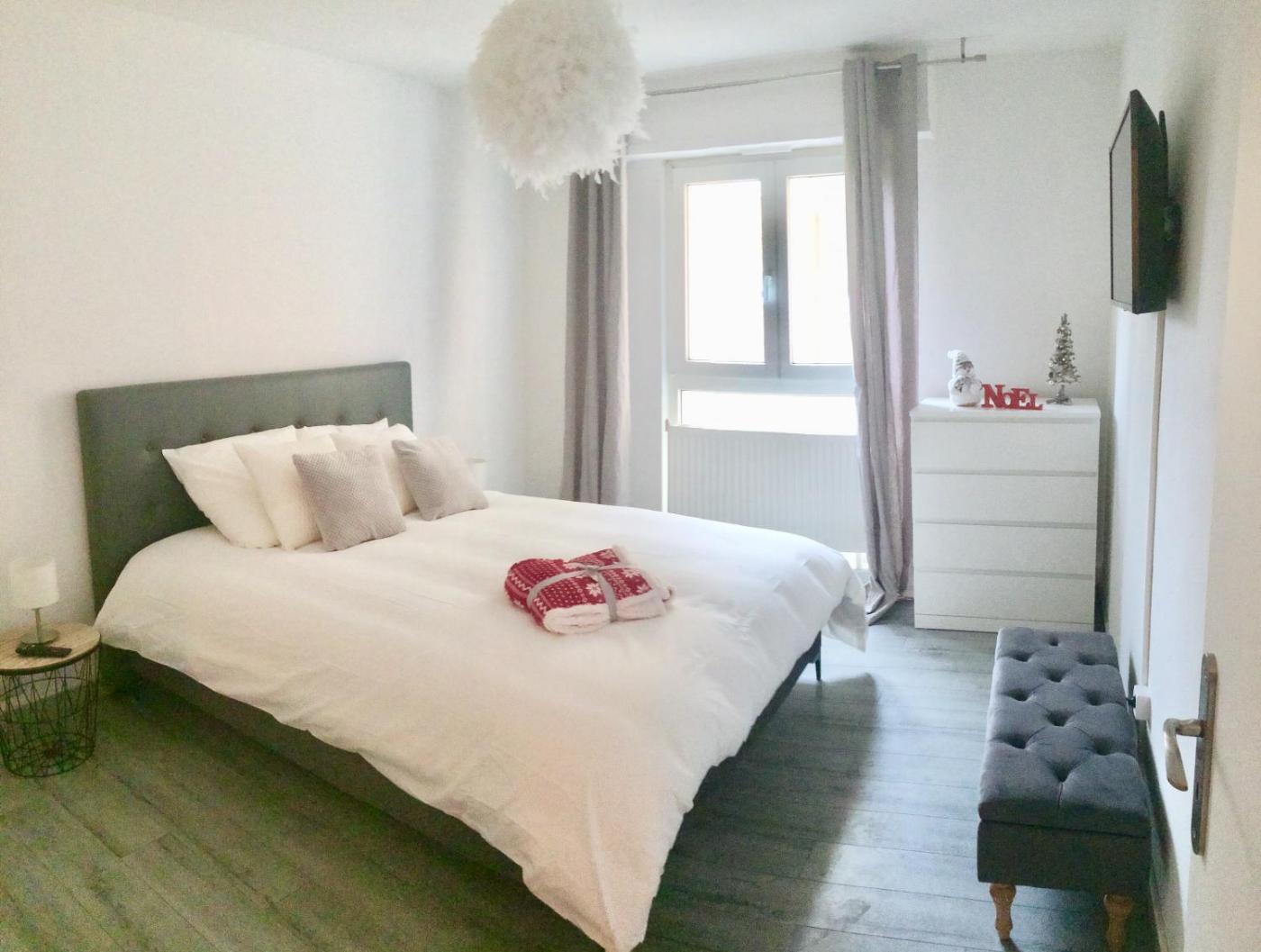 Appartement 1 Chambre. Featuring a private entrance, this apartment consists of 1 living room, 1 separate bedroom and 1 bathroom with a shower and a hairdryer. The fully equipped kitchen features a stovetop, a refrigerator, a dishwasher and kitchenware. The apartment provides a flat-screen TV with cable channels, a washing machine, soundproof walls, a tea and coffee maker as well as city views. The unit offers 2 beds.