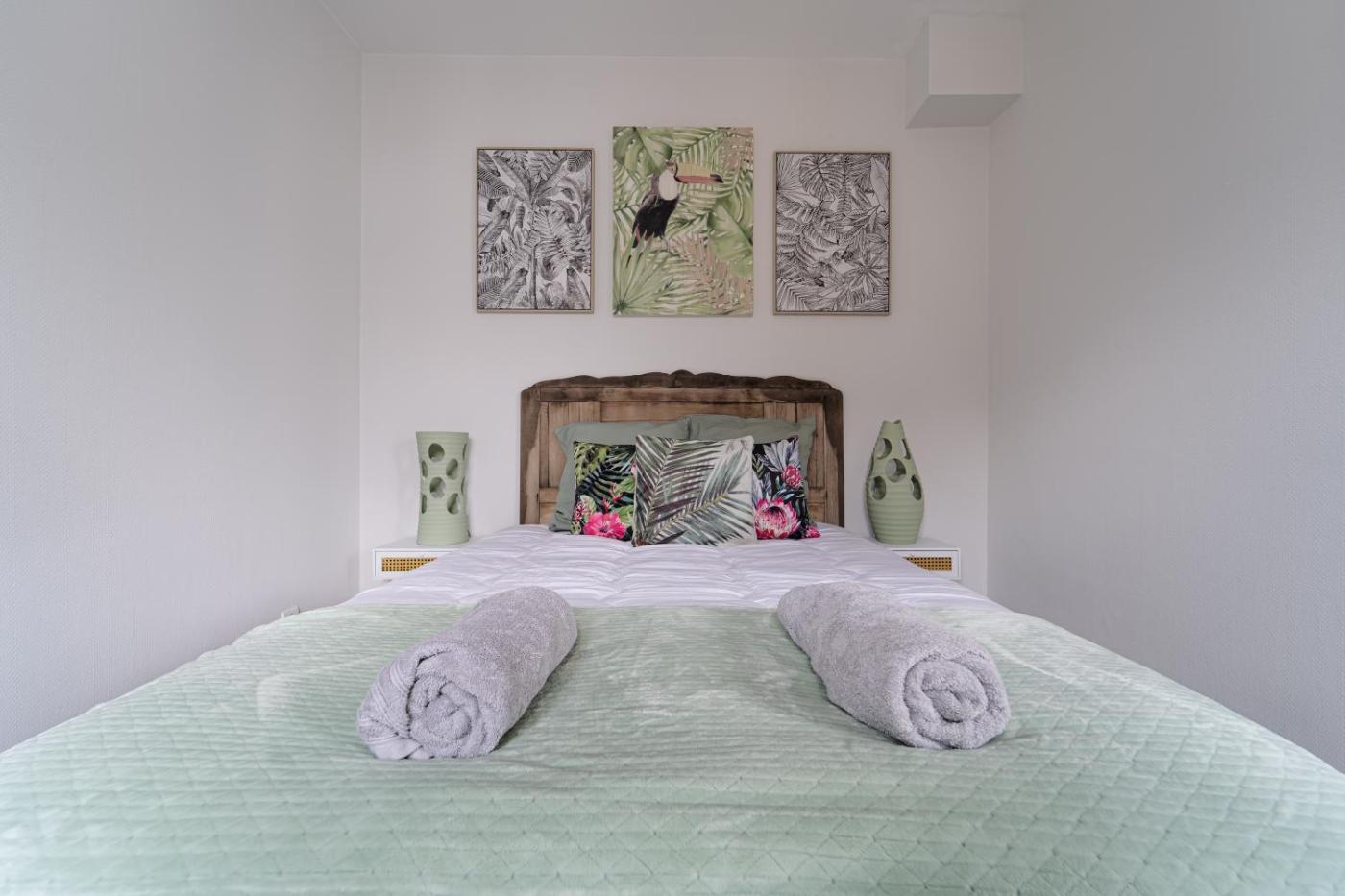 Cet appartement se compose de 1 chambre, dun salon, dune cuisine entièrement équipée avec un réfrigérateur et une machine à café, ainsi que de 1 salle de bains avec une baignoire et des articles de toilette gratuits. Des serviettes et du linge de lit sont mis à votre disposition.