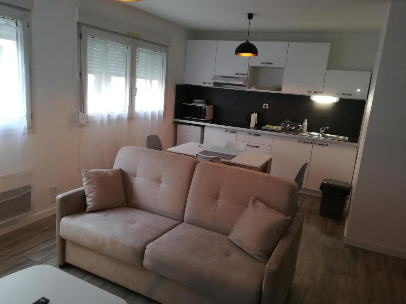 Appartement 1 Chambre. This apartment includes 1 living room, 1 separate bedroom and 2 bathrooms with a bath and free toiletries. In the well-equipped kitchen, guests will find a stovetop, a refrigerator, kitchenware and a microwave. The apartment offers a coffee machine, a dining area, a wardrobe, a dressing room, as well as a flat-screen TV. The unit has 2 beds.