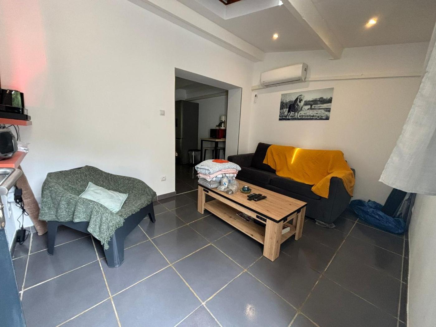 Appartement 1 Chambre. Boasting a private entrance, this air-conditioned apartment includes 1 living room, 1 separate bedroom and 1 bathroom with a walk-in shower and a hairdryer. Guests will find a stovetop, a refrigerator, kitchenware and an oven in the well-equipped kitchen. The apartment also features a barbecue. Featuring a terrace with garden views, this apartment also offers soundproof walls and a flat-screen TV with streaming services. The unit has 5 beds.