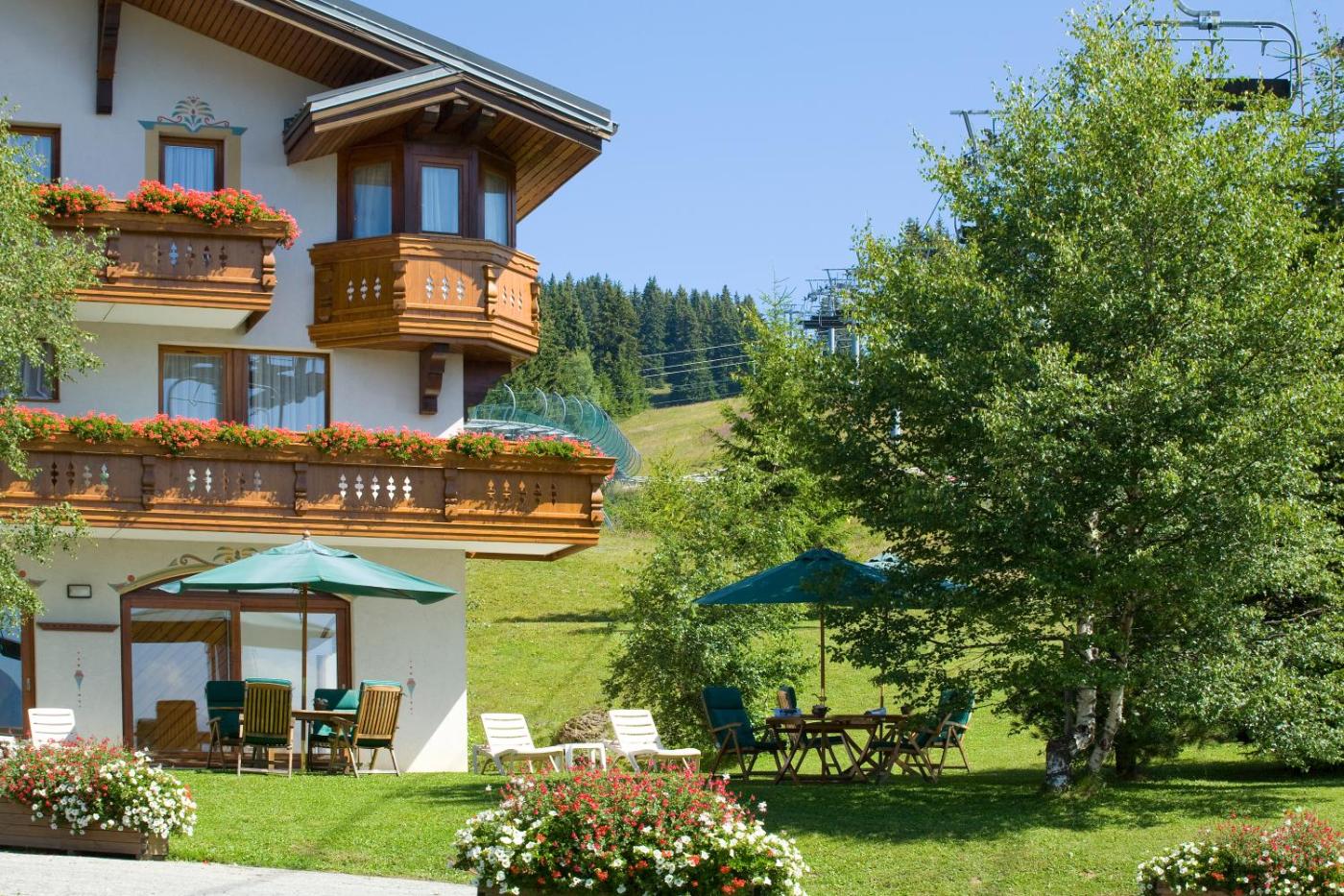 Chambre Triple. Présentant une superficie de 25 m², cette chambre orientée à l’ouest et au sud-est propose une ambiance montagnarde. Cet hébergement est doté d’un balcon meublé, dune grande chambre avec un lit double (160 x 200 cm) ainsi que d’un coin séparé avec un lit simple (90 x 200 cm). ;