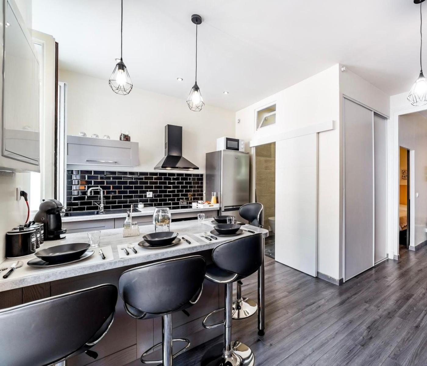 Appartement 1 Chambre. Meals can be prepared in the well-fitted kitchen, which is equipped with a stovetop, a refrigerator, kitchenware and an oven. This apartment features a private entrance, soundproof walls, flat-screen TV, as well as chocolate for guests. The unit offers 2 beds.
