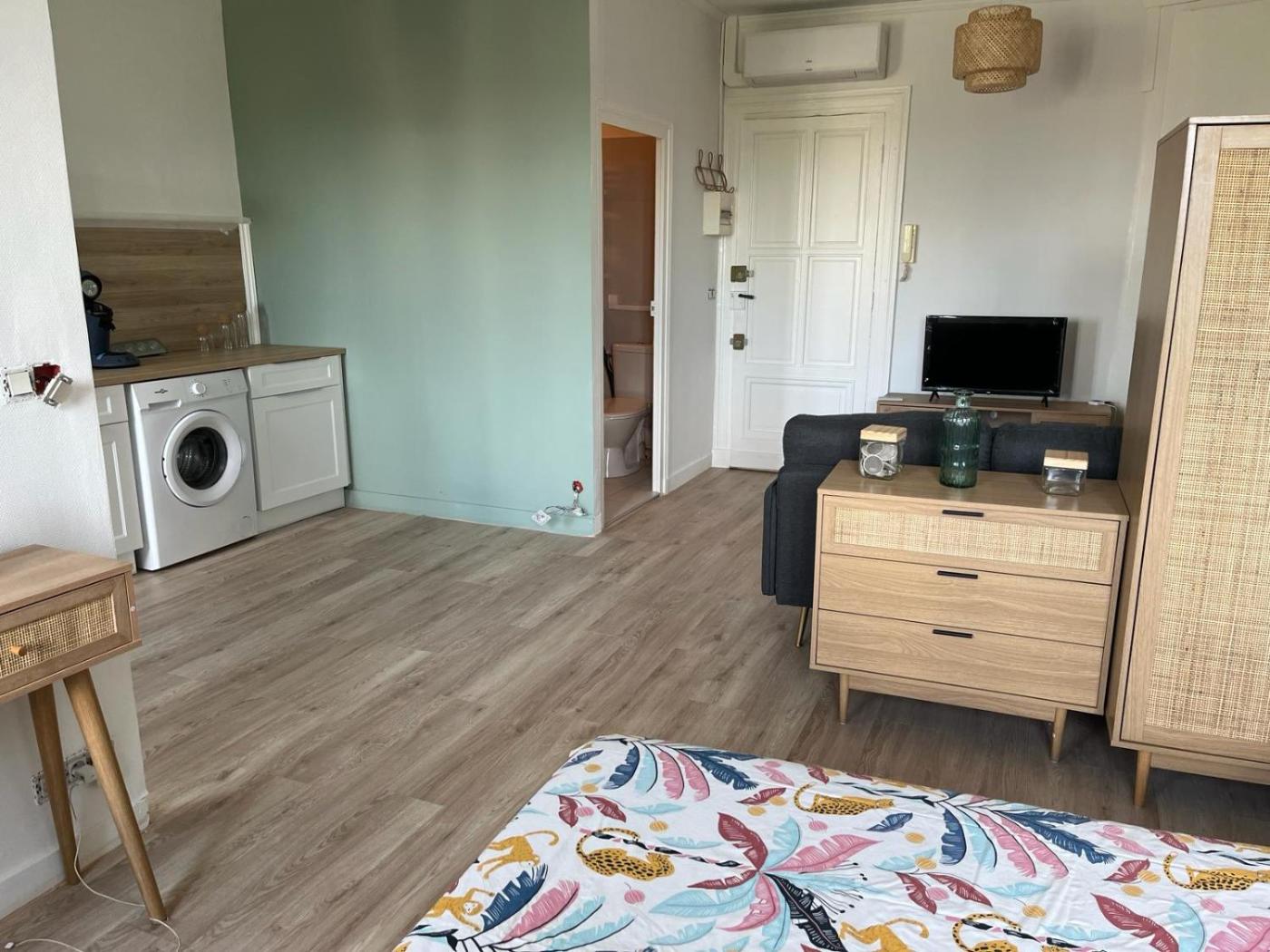 Studio avec Terrasse. The well-fitted kitchen features a stovetop, a refrigerator, kitchenware and an oven. This air-conditioned studio has a private bathroom, a washing machine, a coffee machine as well as a terrace. The unit has 2 beds. ;
