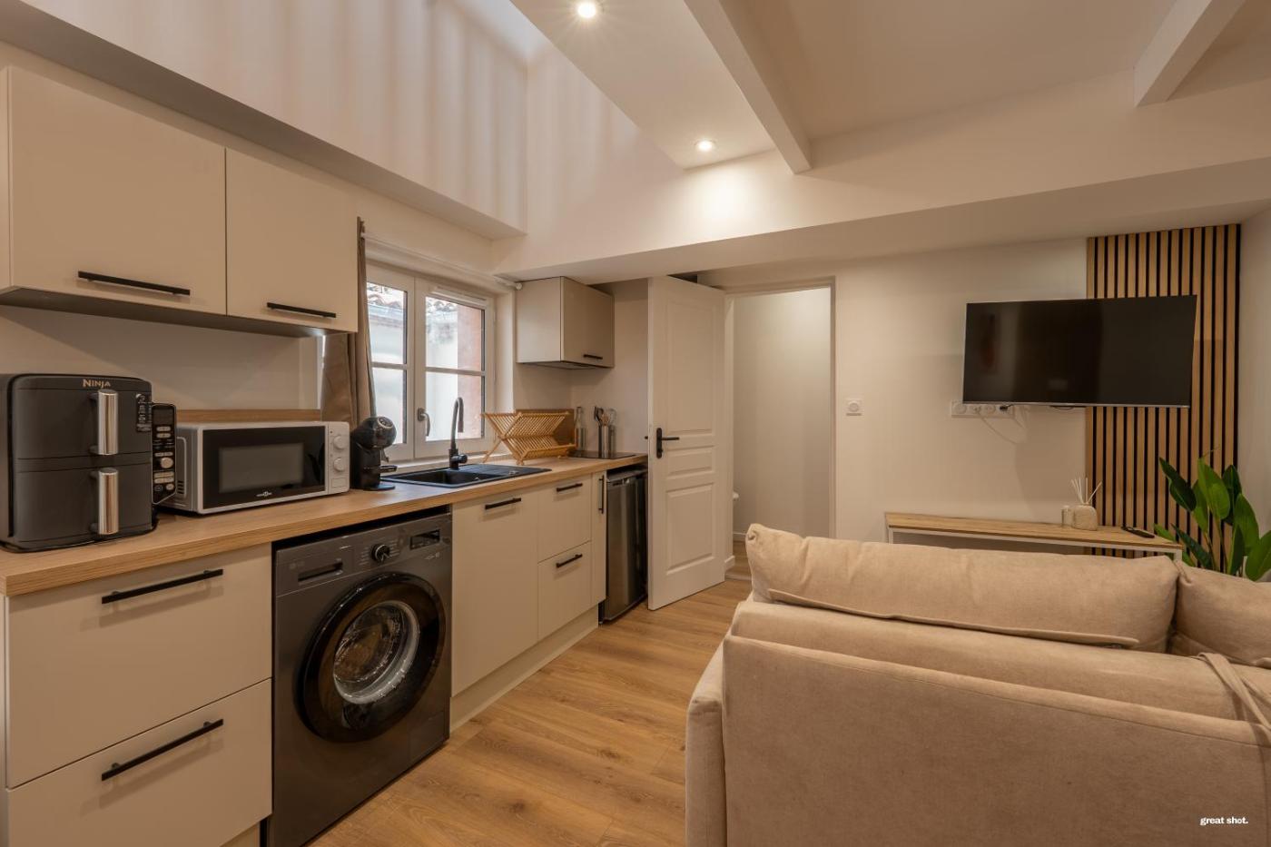 Appartement 1 Chambre. The apartment has 1 bedroom, 1 bathroom and a kitchen. The apartments kitchen is available for cooking and storing food. This apartment features a washing machine, heating and a flat-screen TV. The unit has 2 beds.