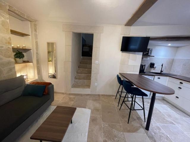 Appartement 1 Chambre. Guests will have a special experience as this apartment provides a hot tub. Featuring a private entrance, this air-conditioned apartment is comprised of 1 living room, 1 separate bedroom and 1 bathroom with a bath. Meals can be prepared in the kitchen, which comes with a stovetop, a refrigerator, kitchenware and an oven. Boasting a terrace with garden views, this apartment also offers soundproof walls and a flat-screen TV with streaming services. The unit offers 2 beds.