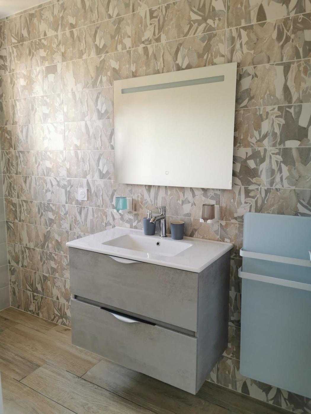 Appartement 2 Chambres. Featuring a private entrance, this air-conditioned apartment is comprised of 1 living room, 1 separate bedroom and 1 bathroom with a walk-in shower. The well-equipped kitchenette features a stovetop, a refrigerator, a dishwasher and kitchenware. Boasting a terrace with garden views, this apartment also offers a tea and coffee maker and a flat-screen TV with streaming services. The unit offers 3 beds.