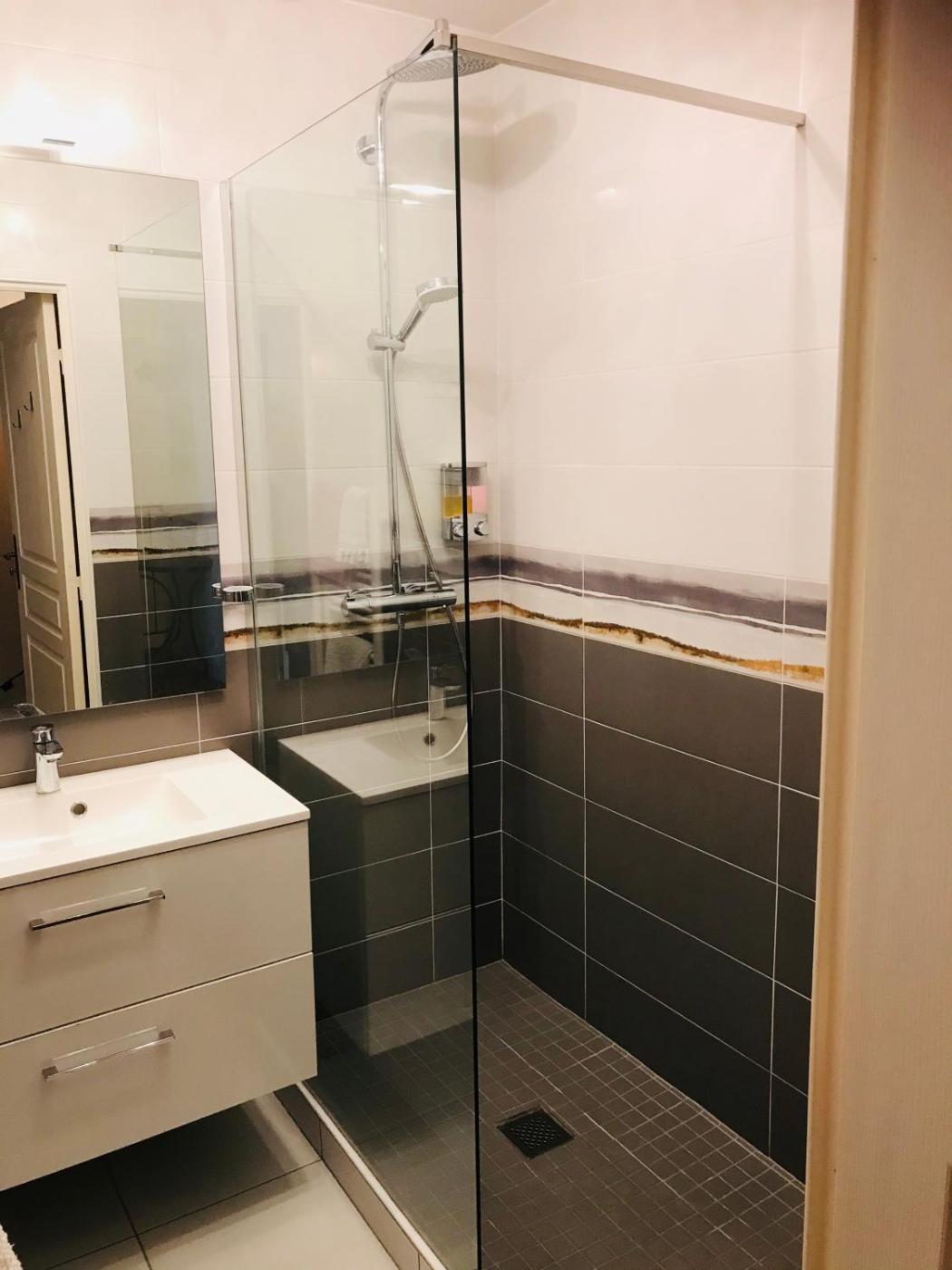 Cet appartement comporte 1 chambre, une télévision à écran plat, la climatisation et un salon.